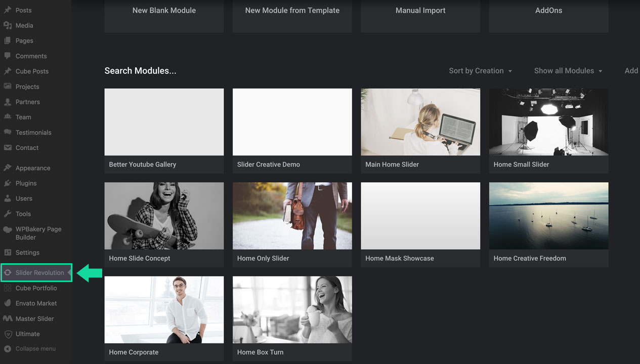 - Now is time to import all sliders. For that go to Revolution Slider -> Import Slider