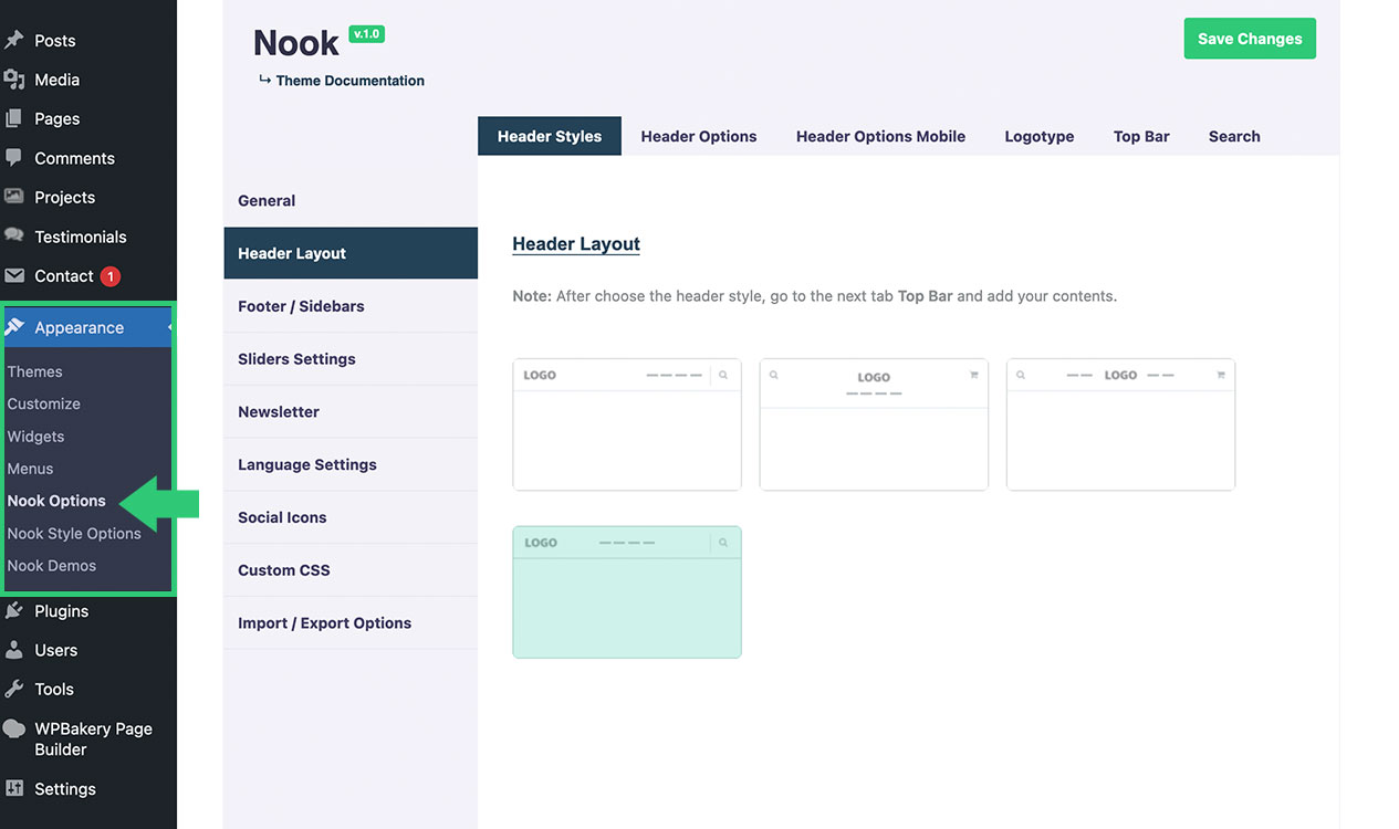 Go to menu Appearance -> Nook options -> Header Layout -> Logotype
