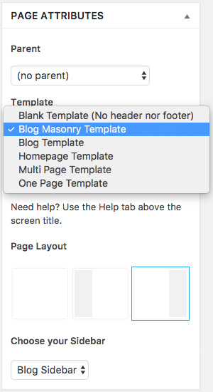 - Now over the page you've created, just scroll a bit down to the end of the page, and go to Blog Style and set your options relative to the Blog Masonry Template.