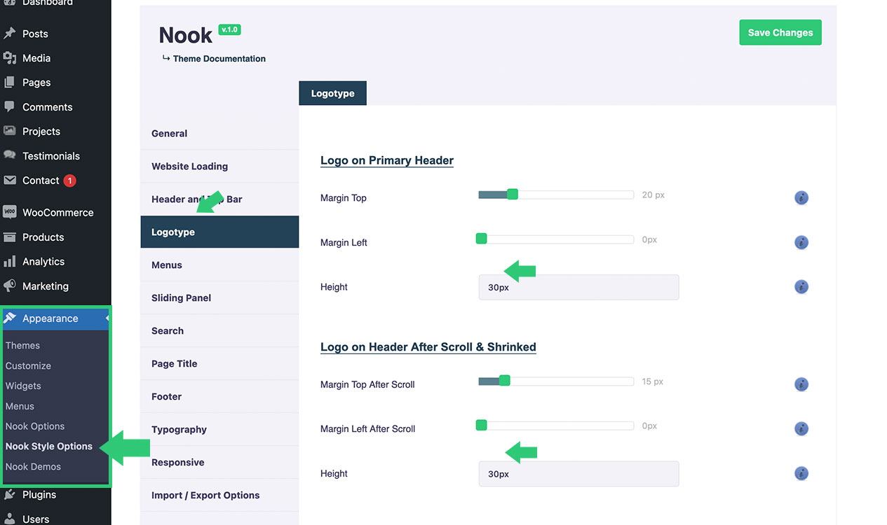Go to menu Appearance -> Nook Style Options -> Logotype -> Height