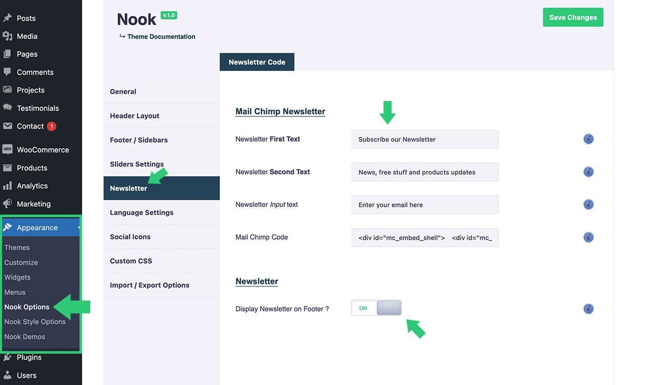 - Click choose file, browse to theme folder and choose the file nook.zip, click Install and wait for a second.