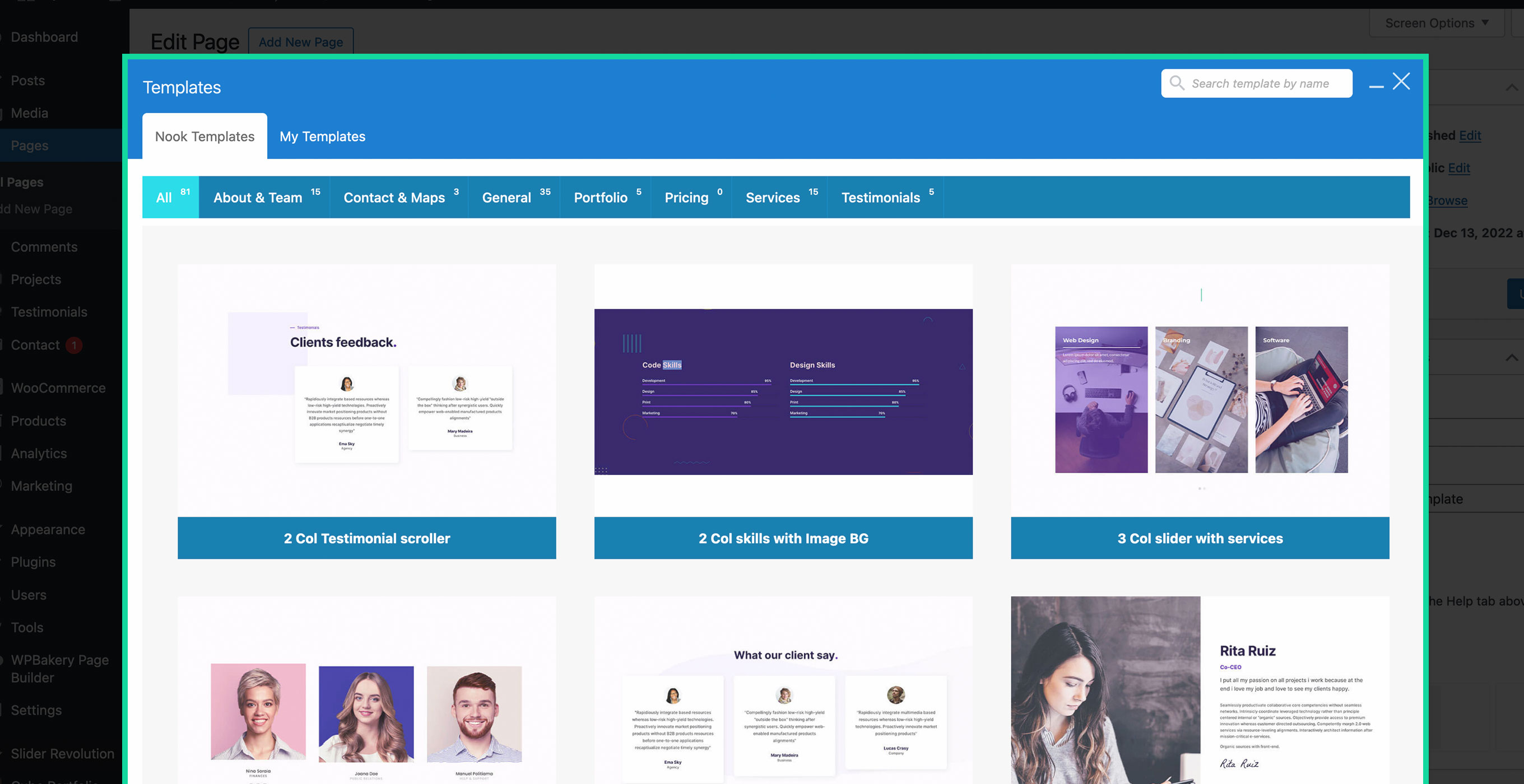- Go to the page where you want to use it and under WP Bakery Page Builder, just select the Testimonials.