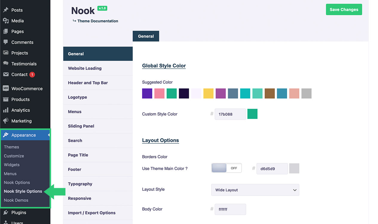 - Login to Wordpress, and on Left Menu go to Appearance -> Themes