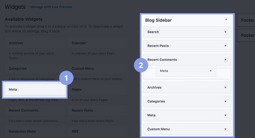 - 1. and 2. Drag-and-drop widgets you'd like to use into "Your Sidebar" widget area, here's an example: