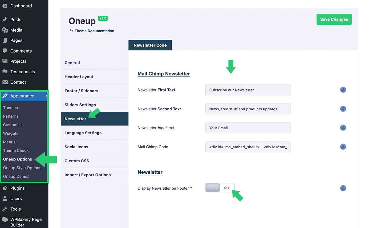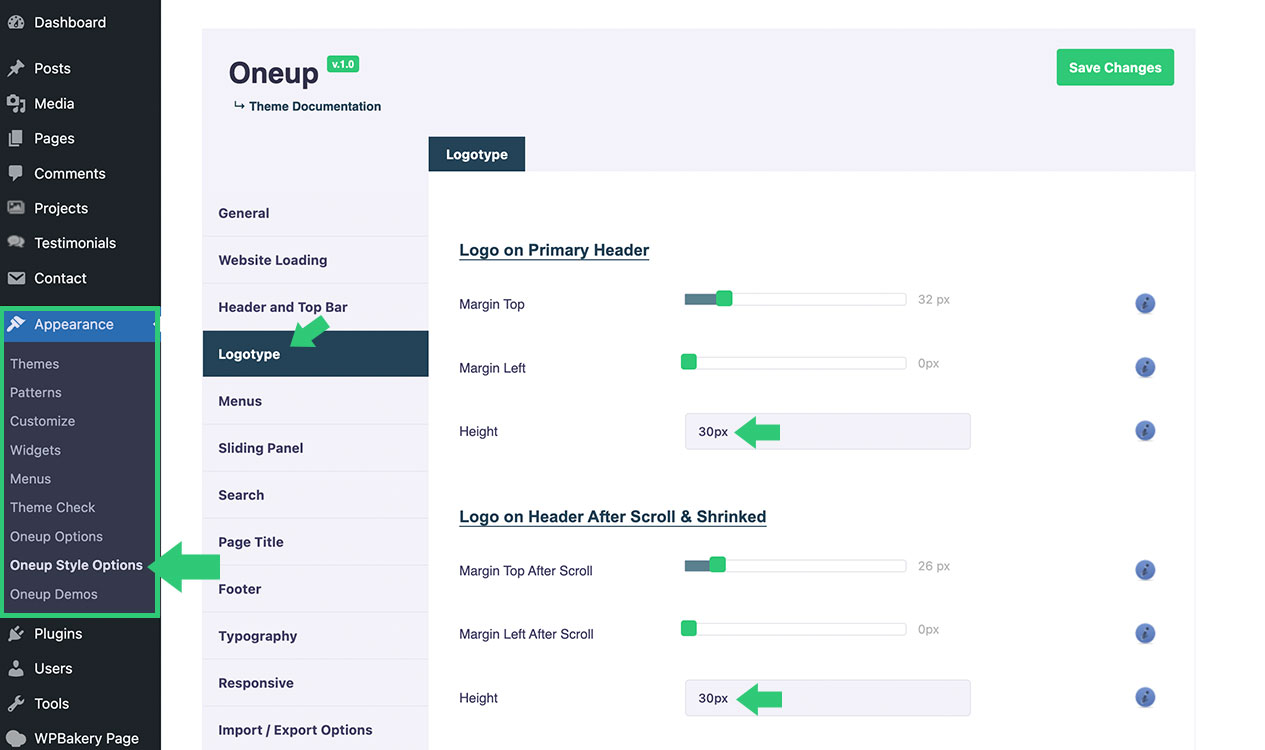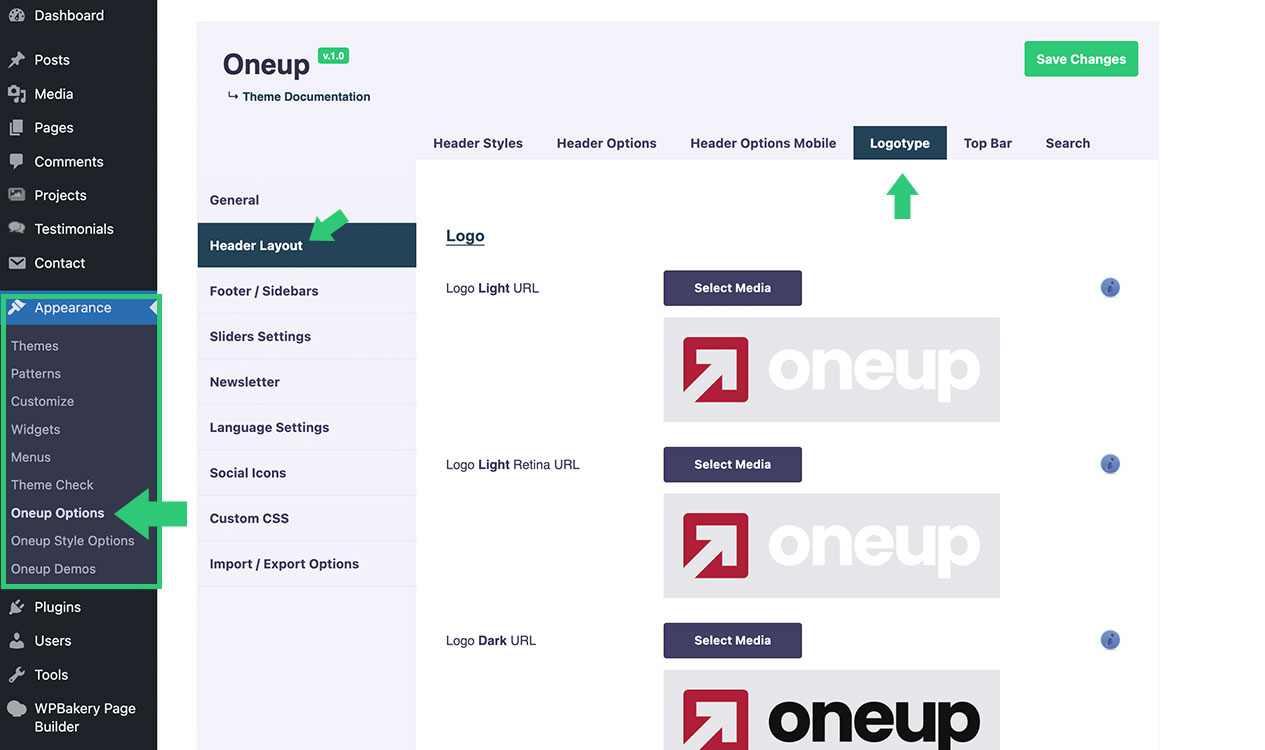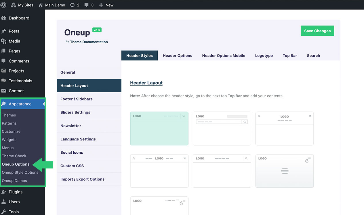 Oneup Options panel is meant for the empowering of your theme with some visual enhancements described below.