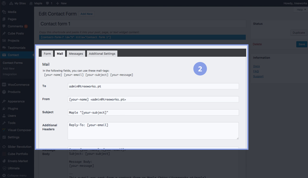 For setting up new contact pages, we use Contact form 7 plugin. This is an awesome way of setting up contact forms in a simple way and for a few clicks.