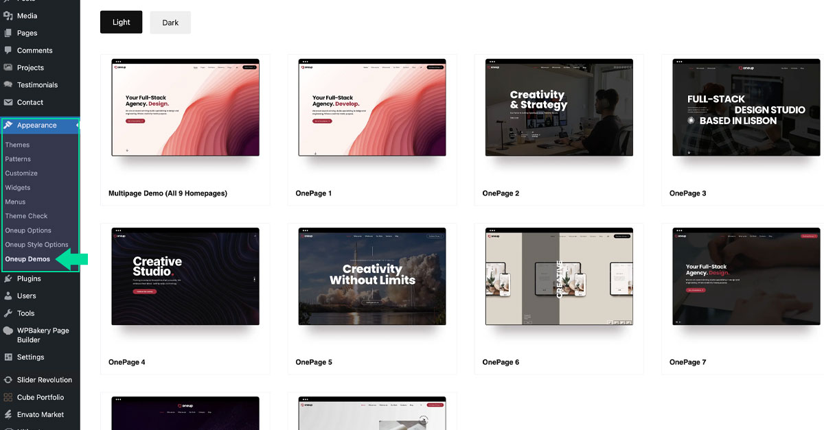 - Choose your Demo from the folder Demo Contents -> 100+ Oneup Demos Light & Dark
