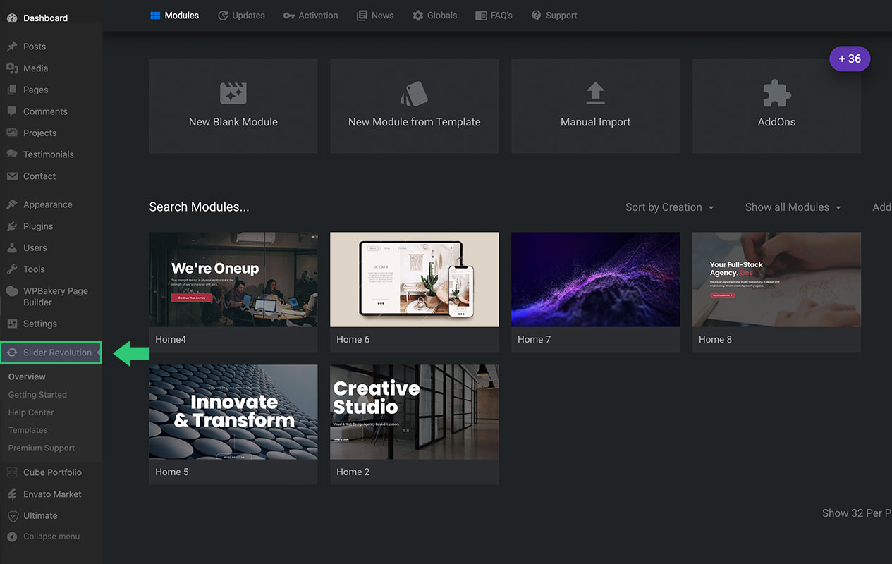 - Now is time to import all sliders. For that go to Revolution Slider -> Import Slider