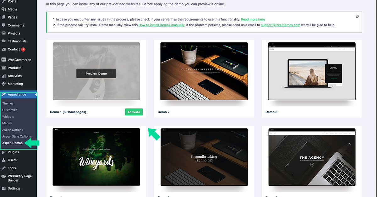 To import the demo via One Click your server need to have the following settings/extensions activated