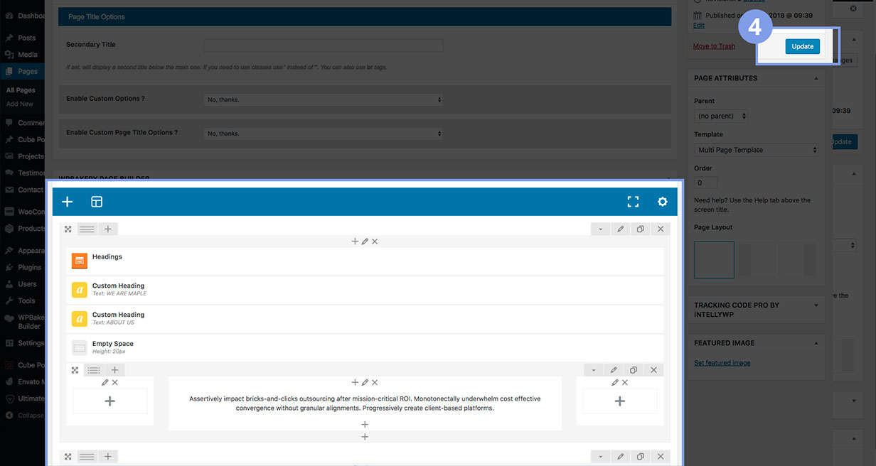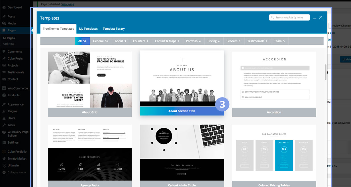 - 1. Open WP Bakery Page Builder plugin from inside any page you are creating, and select Cube Portfolio shortcode.